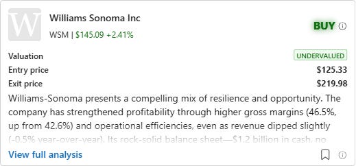 For investors with a multi-year horizon, the current valuation and strategic initiatives create an attractive entry point. The overall recommendation is a BUY. The company’s financial health, margin expansion, and long-term growth strategies outweigh near-term volatility. While patience may be required as macroeconomic pressures ease, WSM’s fundamentals and undervaluation suggest meaningful upside as its initiatives gain traction and housing trends stabilize.