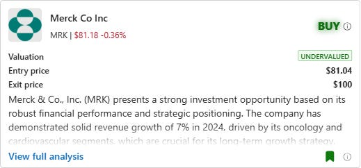 MRK has demonstrated solid revenue growth of 7% in 2024, driven by its oncology and cardiovascular segments, which are crucial for its long-term growth strategy. The improvement in gross margin to 76.3% indicates efficient cost management and a favorable sales mix. Despite challenges such as pricing pressures and competition, Merck's strategic acquisitions and collaborations, particularly in oncology, position it well for future growth. The company's net income has significantly increased to $17.1 billion, reflecting strong operational performance and reduced R&D expenses. MRK delivers a solid 28% FCF margin, reflecting strong cash generation. It underperforms in capital efficiency with 0.41 ROE, suggesting room for improvement in profitability relative to equity. Its high debt-to-equity ratio of 0.83 signals elevated financial risk. Although Merck has a high debt level, its cash reserves have increased, enhancing liquidity. The absence of significant share dilution and goodwill impairments further supports its financial health. Given these factors, along with a favorable valuation and strong cash flow generation, Merck is well-positioned for long-term growth, making it a BUY recommendation.